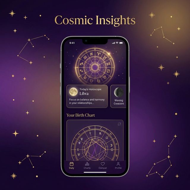 Horoscope and astrology platform with daily readings, birth charts, compatibility matching, and live consultation features.